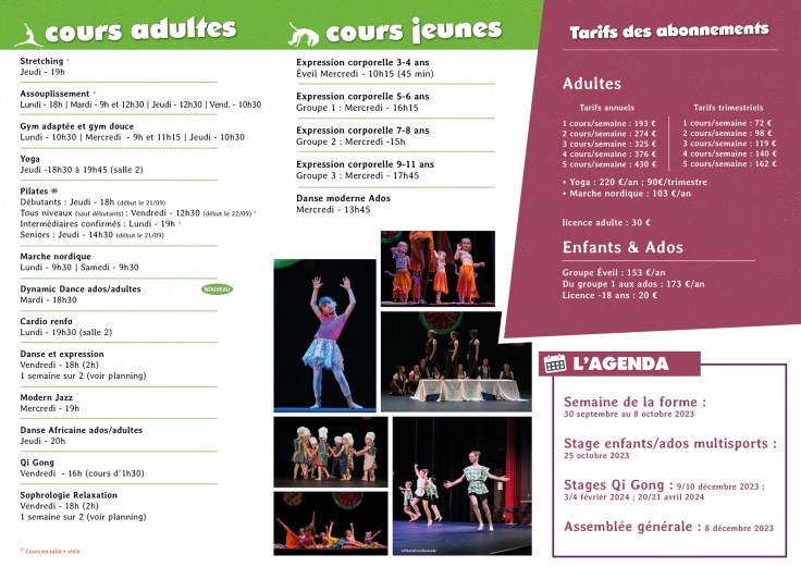 Diverses possibilités de paiement : au cours, au trimestre…Se renseigner au 06.82.04.76.39