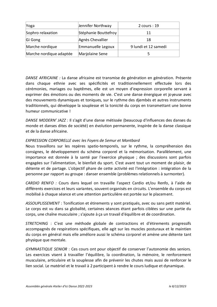 Diverses possibilités de paiement : au cours, au trimestre…Se renseigner au 06.82.04.76.39